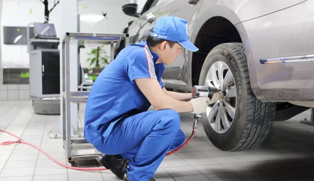 4S店的专业维修技师会严格按照技术研发部门提供的车型数据,根据不同车型设置扭矩,使用德国大众认证的扭力扳手对轮胎进行拆卸安装,扭矩更为精准,安全性更有保障。