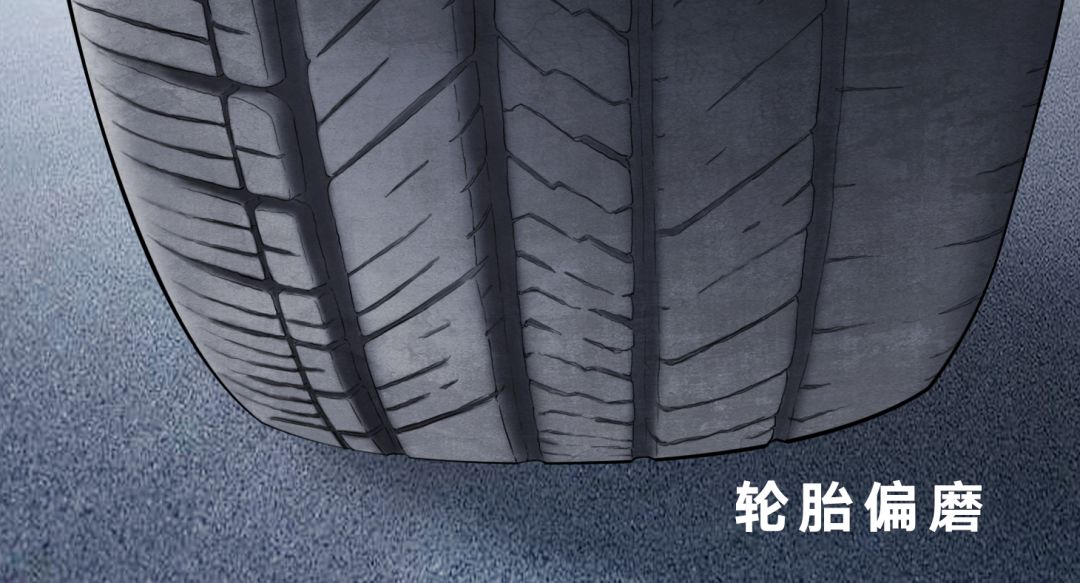 3. 检查轮胎,发现轮胎出现偏磨情况。