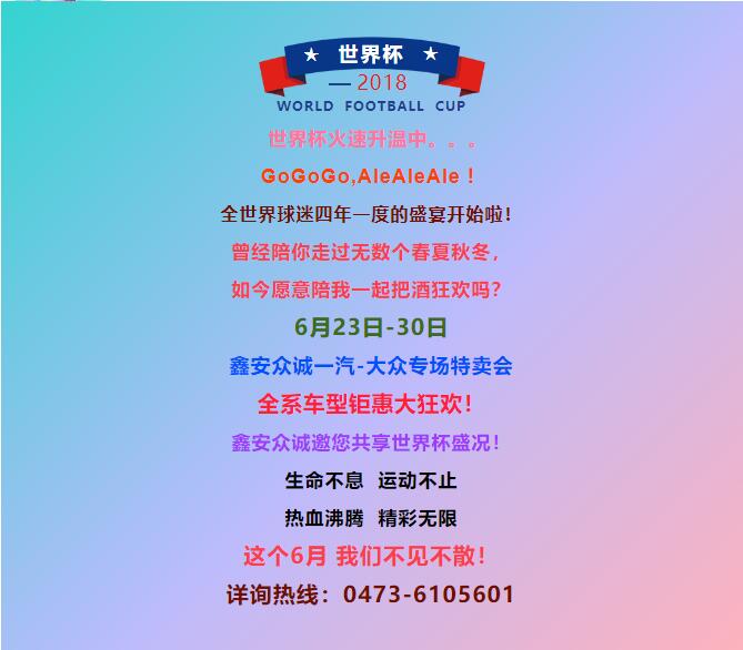 【玩转世界杯】乌海鑫安众诚一汽-大众专场特卖会!