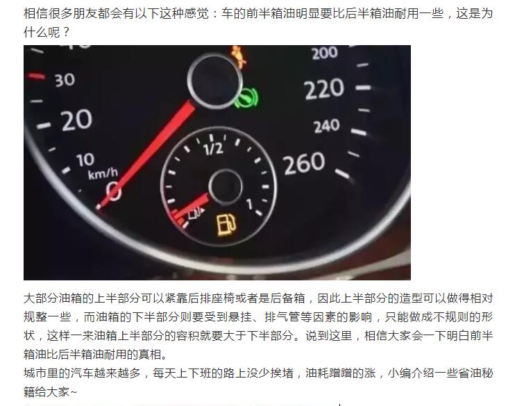 车的前半箱油明显要比后半箱油耐用一些?