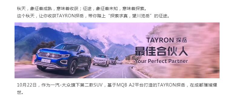 18.88~31.98万元,成就你的豪情壮志!——一汽-大众TAYRON探岳璀璨耀世