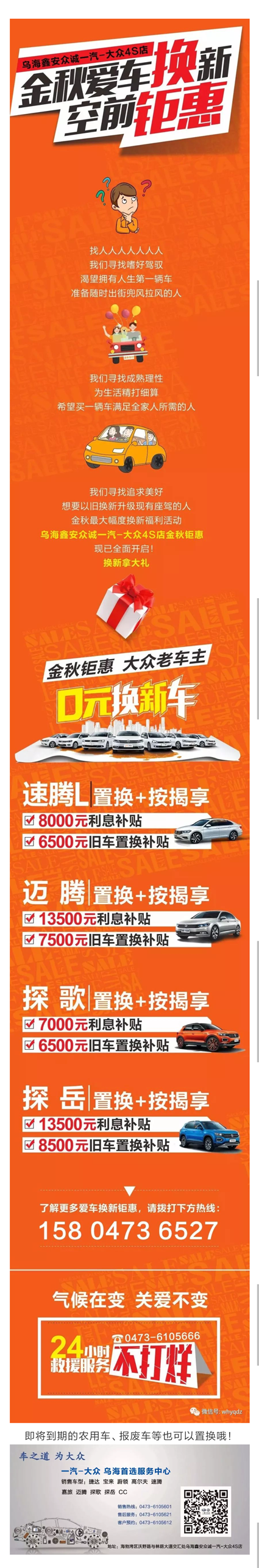 二手车、报废车置换补贴高达1.2万就在乌海鑫安一汽-大众4S店!