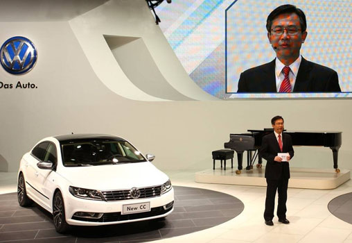首度亮相上海车展的还有一汽-大众新CC。一汽-大众董事、总经理安铁成在致辞中表示:“首次在中国亮相的新CC,在保持优雅造型设计的同时,更加趋于成熟稳重。作为年度改款升级车型,一汽-大众新CC从高品质出发,在外型设计和技术装备上,均有了较大幅度的提升。” 新CC沿用了海外2013款的设计,最明显的变化在于采用横竖交叉条幅的进气格栅与线条简洁大方的灯组样式,相比现款要沉稳大气许多;内饰方面则采用了真皮内饰与金属装饰件的搭配使用,营造出动感的轿跑车风格;在科技型配置方面,新CC应用了并线辅助、辅助动态灯光照明系统、XDS差速锁、第二代智能自动泊车功能以及Easy open开启后备箱功能,不仅为行车提升了安全保证,也令驾乘更加便捷、舒适与安全。