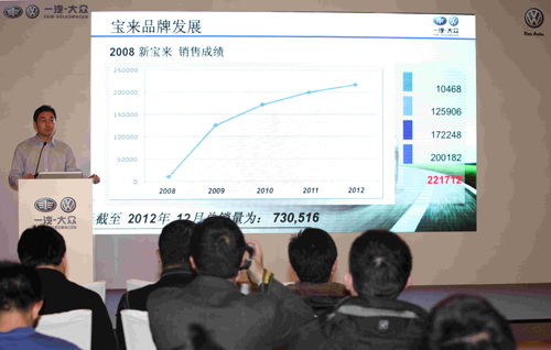 在本次活动中,一汽-大众集中为记者们讲解了宝来品牌的发展、市场成绩,以及全新宝来的受众人群、产品优势等内容