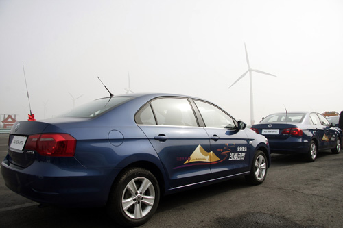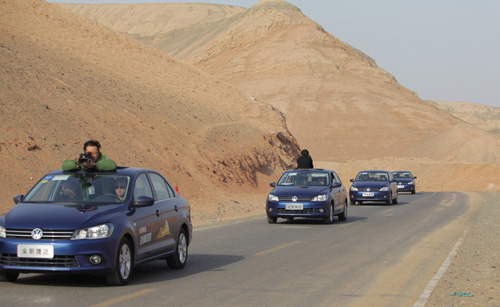 全新捷达车队驶入车少人稀戈壁路段